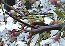 4月5日の午後8時ごろ、通り掛かりに見たところ、またまた枝が折られ、観察していた花がなくなっていました。ショック!!