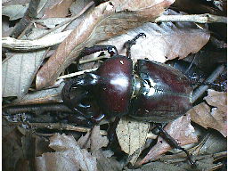 カブトムシが羽化して出てきた。 角が曲がっているのは、サナギの時に掘ったからかな?