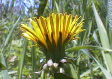 セイヨウタンポポの総包は、反り返っているのが特徴。 カントウタンポポと比べてみよう。 (3月の花を見て!)