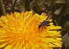 タンポポの、黄色い色がまぶしい。 花にはいろいろな虫がやってくる。 横浜市港北区 1997.04.11. |